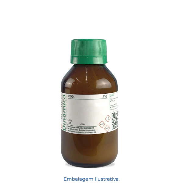A Alizarina P.A. (CI 58000) é um composto orgânico empregado como indicador em análises químicas, especialmente em procedimentos de titulação e métodos analíticos que dependem de resposta colorimétrica para identificação de pontos de viragem. Quimicamente identificada como 1,2-dihidroxiantraquinona, apresenta mudança de coloração característica conforme o meio e as condições do ensaio, auxiliando a interpretação visual dos resultados. É utilizada em laboratórios de química analítica, ensino e controle de qualidade, tanto no preparo de soluções indicadoras quanto em ensaios específicos envolvendo complexação de íons metálicos, sempre de acordo com o método adotado.