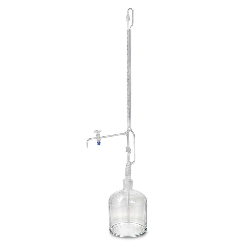 A Bureta Automática 10mL Incolor Faixa Azul Torneira de Vidro com Frasco 1000mL é uma vidraria desenvolvida para medições volumétricas precisas e confiáveis em procedimentos laboratoriais. Com uma capacidade de 10mL, é ideal para titulações e análises químicas que demandam alta precisão. O frasco de 1000mL integrado permite o armazenamento contínuo da solução utilizada, garantindo praticidade durante o uso. Sua torneira de vidro proporciona controle preciso do fluxo, enquanto a faixa azul facilita a leitura da escala graduada. Este produto é amplamente utilizado em laboratórios de pesquisa, controle de qualidade e ensino.