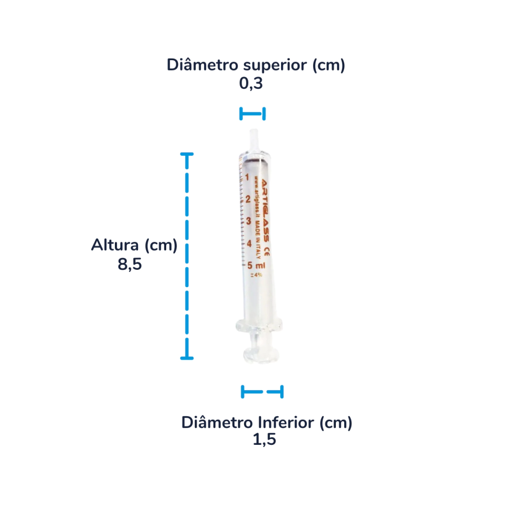 A Seringa de Vidro Luer Slip 5mL é uma vidraria utilizada em hospitais, laboratórios e ambientes que necessitam de precisão e segurança em testes e procedimentos clínicos. Fabricada em vidro neutro de primeira classe hidrolítica, a seringa é intercambiável e reutilizável, sem agulha. Recomenda-se a lavagem, enxágue, secagem e esterilização antes da primeira utilização e em todas as subsequentes. Não estéril, não deve ser esterilizada por radiação.