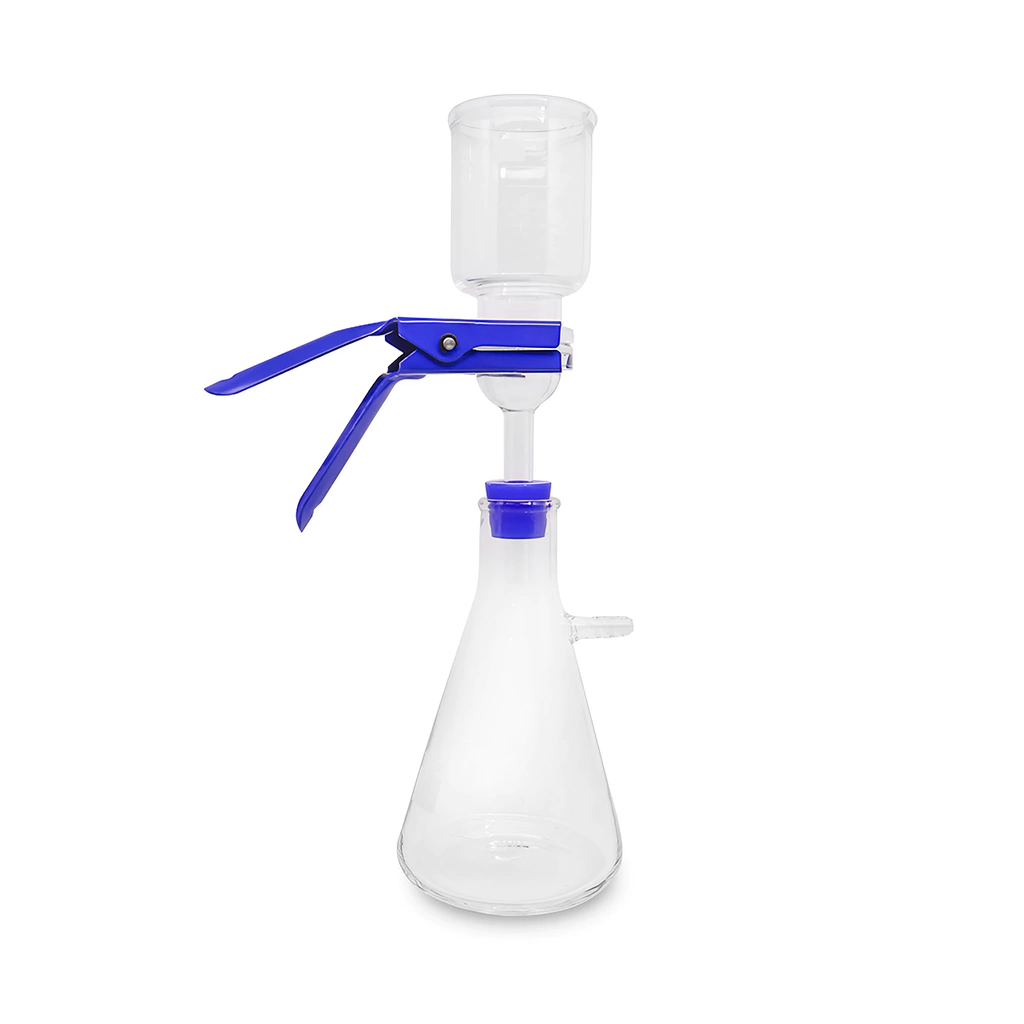 O Sistema de Filtração a Vácuo Completo com Garra de Alumínio Erlenmeyer 1000mL é uma solução prática e eficiente para filtrações em procedimentos laboratoriais, como análises químicas, microbiológicas e de amostras ambientais. Este conjunto inclui todos os componentes necessários para realizar filtrações rápidas e seguras, eliminando partículas indesejadas em líquidos ou gases. O sistema é ideal para laboratórios que trabalham com amostras líquidas de grandes volumes, garantindo precisão e qualidade nos processos. A garra de alumínio oferece estabilidade e segurança durante o uso, enquanto o Erlenmeyer de 1000mL é projetado para suportar pressões de vácuo, promovendo durabilidade e eficiência.