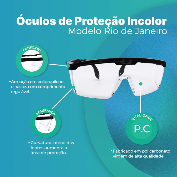 - Fabricado em policarbonato virgem de alta qualidade, oferece maior proteção contra partículas volantes multidirecionais;