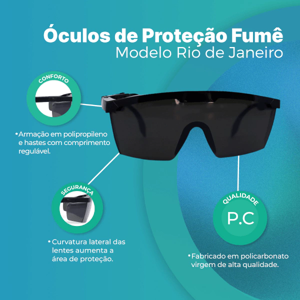 O Óculos de Proteção Fumê é uma ferramenta essencial para a proteção visual de colaboradores, trabalhadores e pesquisadores que trabalham em contato direto com materiais que podem ferir ou afetar a saúde de alguma forma. Este equipamento de proteção individual é indicado para uso em indústrias químicas, automobilísticas, metalmecânicas, agroindústrias, construção civil e trabalhos a céu aberto.