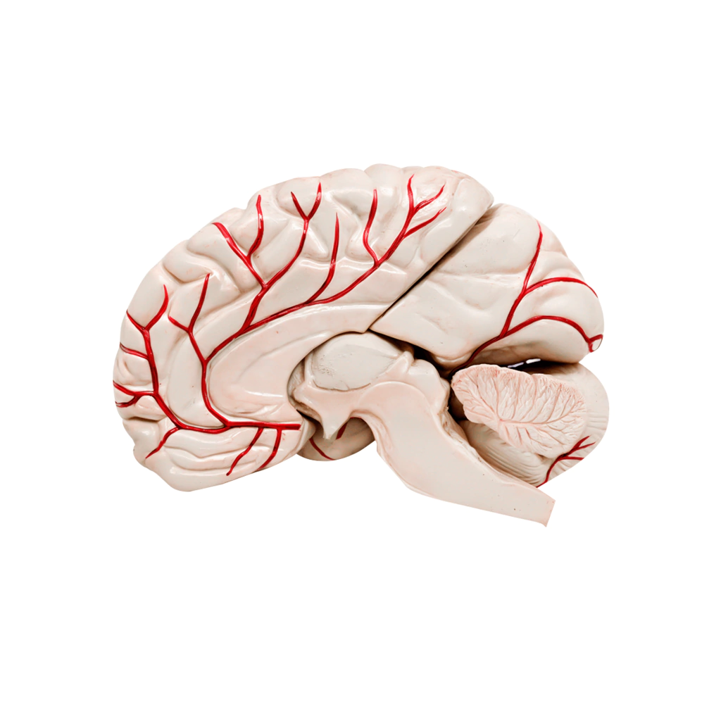 Este modelo anatômico é uma representação fiel do cérebro humano, dividido em 8 partes destacáveis, incluindo artérias detalhadas. É confeccionado em resina plástica de alta qualidade, proporcionando durabilidade e uma experiência tátil realista para o estudo da anatomia cerebral.