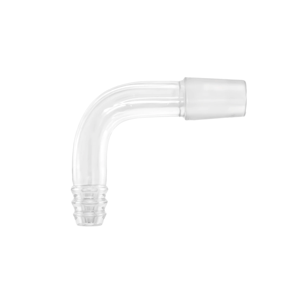O Conector Ângulo 90° Junta Macho 16/25 e Oliva é uma vidraria utilizada como peça de conexão em sistemas de montagem para condução de líquidos ou gases em laboratórios. Seu formato angular permite o redirecionamento do fluxo em 90°, facilitando a organização de montagens em bancadas e reduzindo o risco de tensão sobre as conexões. A extremidade com junta macho 16/25 garante compatibilidade com outras vidrarias padrão esmerilhado, enquanto a oliva lateral permite a conexão segura de tubos flexíveis, com vedação adequada. Este tipo de conector é amplamente utilizado em processos como destilações, refluxo, entrada ou saída de gases e condução de líquidos, sendo compatível com balões, condensadores, adaptadores e sistemas de controle de pressão.