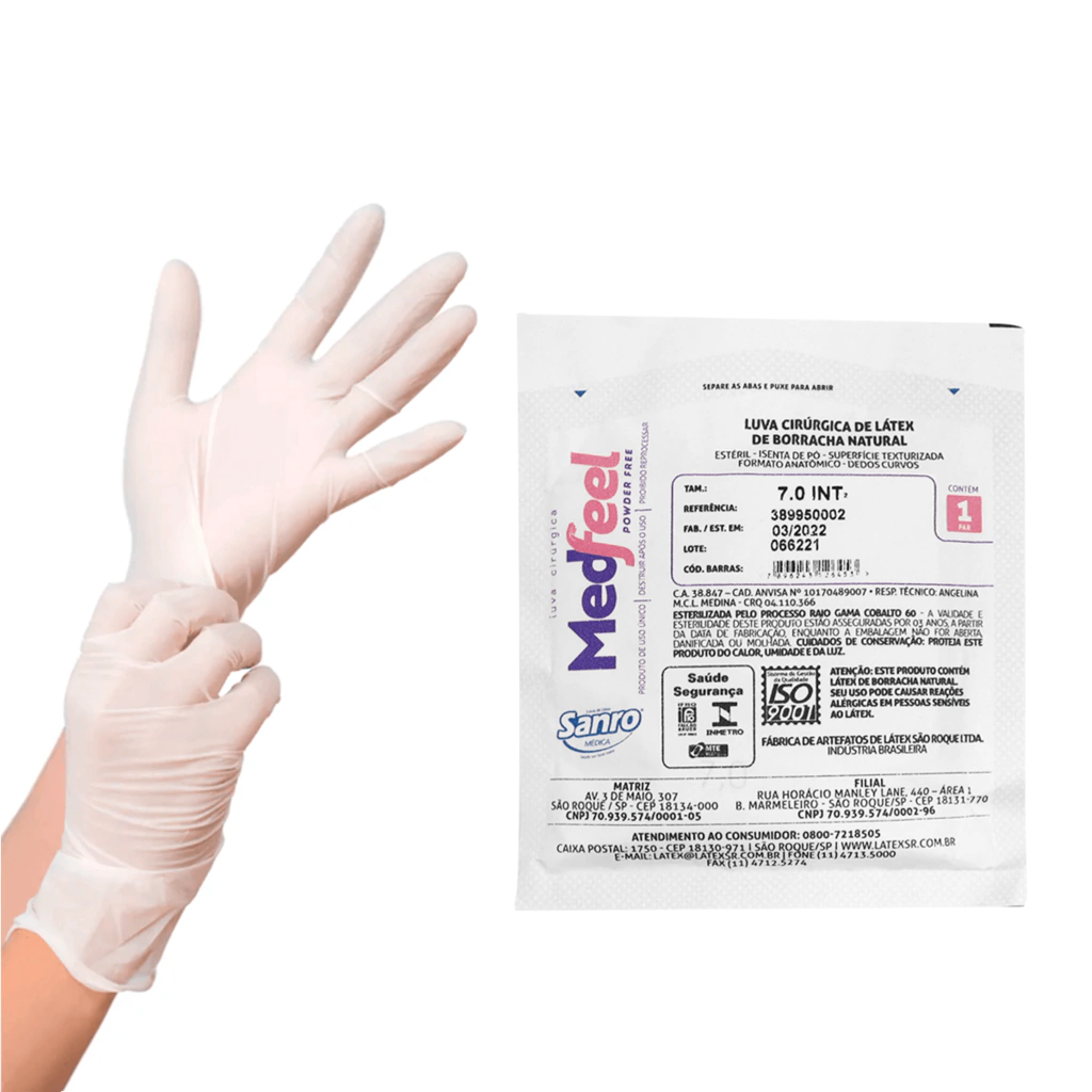 - 1x Par de Luvas Cirúrgicas Latéx Estéril Sem Pó embaladas individualmente.