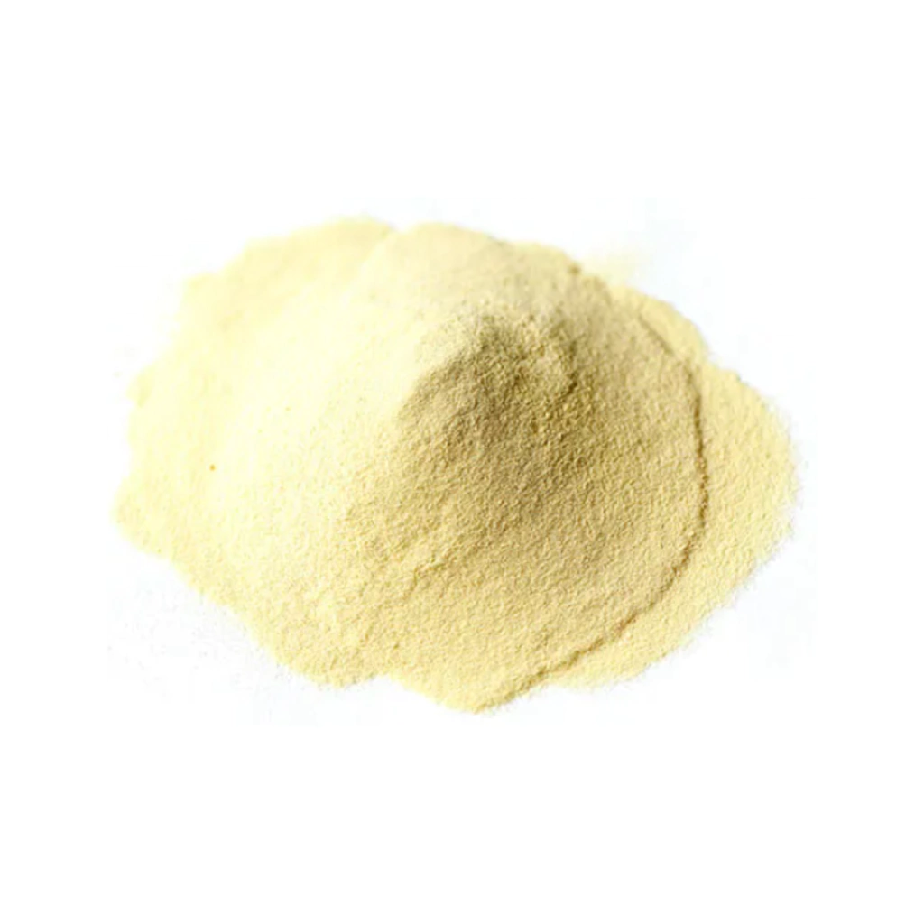 Aparência: Pó ou grânulos de coloração amarelada a marrom‑claro;