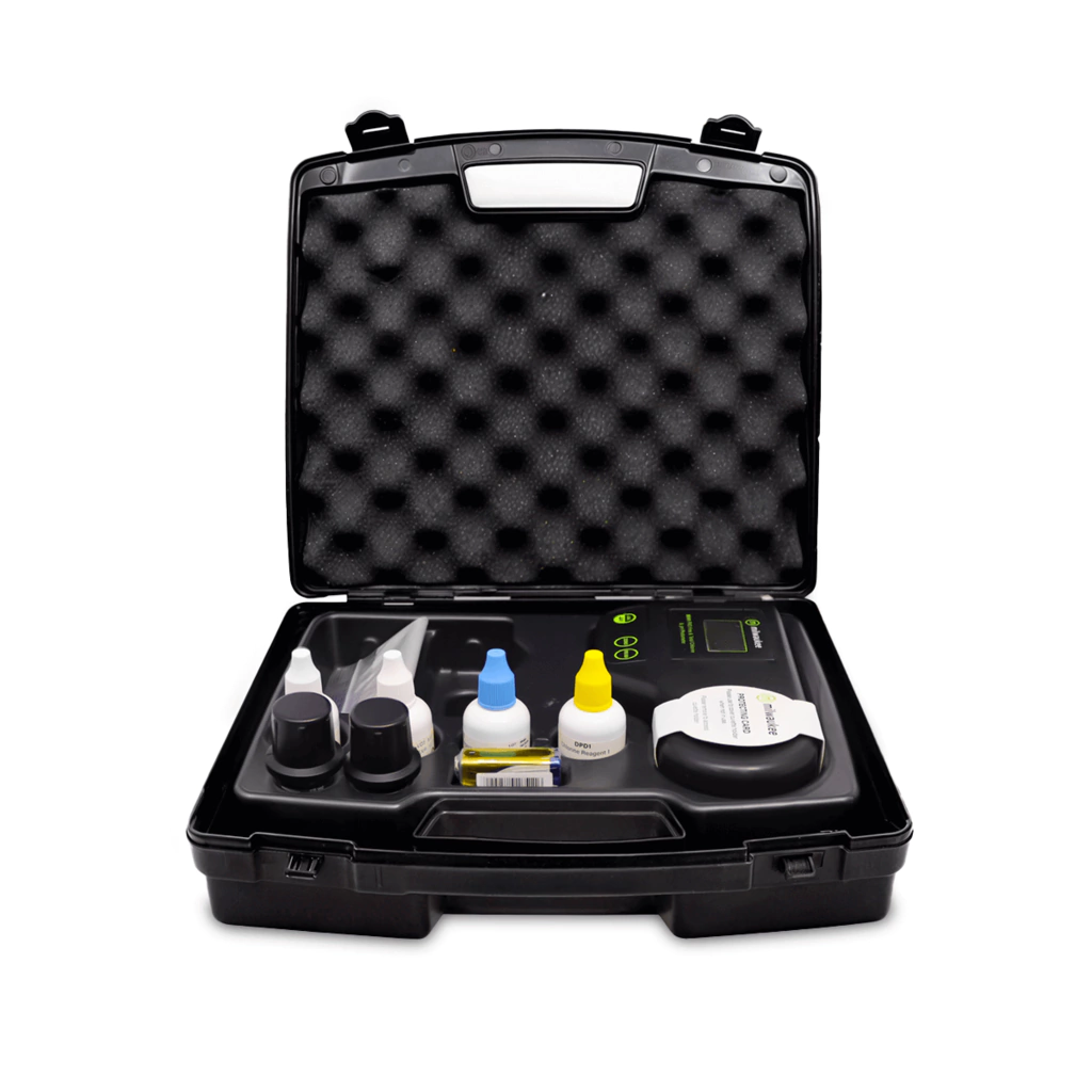O Medidor de Cloro Livre Total e pH é um dispositivo portátil utilizado para medir os níveis de cloro livre e o pH em diferentes tipos de água. Ele é ideal para profissionais que precisam de medições precisas e rápidas para monitorar a qualidade da água em ambientes como piscinas, estações de tratamento de água e sistemas industriais. Com um design compacto e fácil de usar, o medidor proporciona resultados em tempo real, facilitando o controle eficaz dos parâmetros essenciais para garantir a segurança e a qualidade da água.