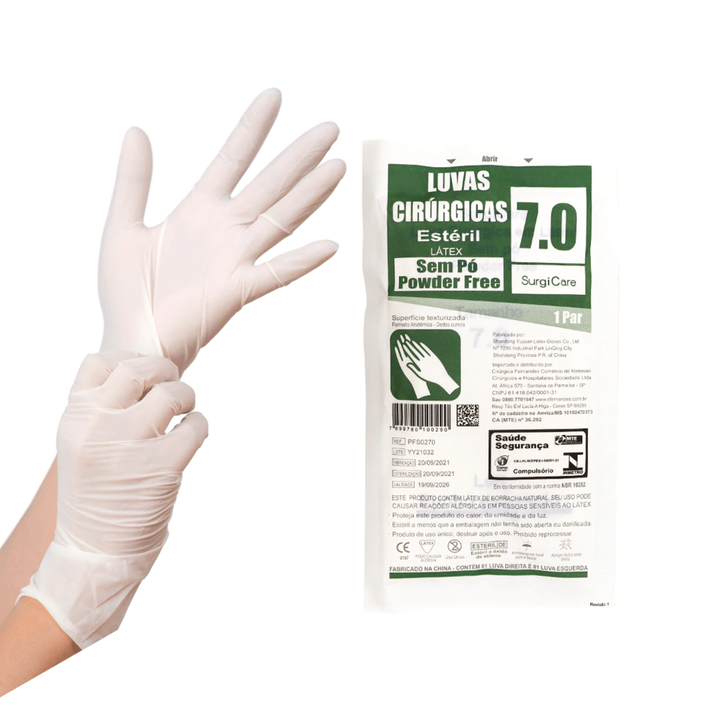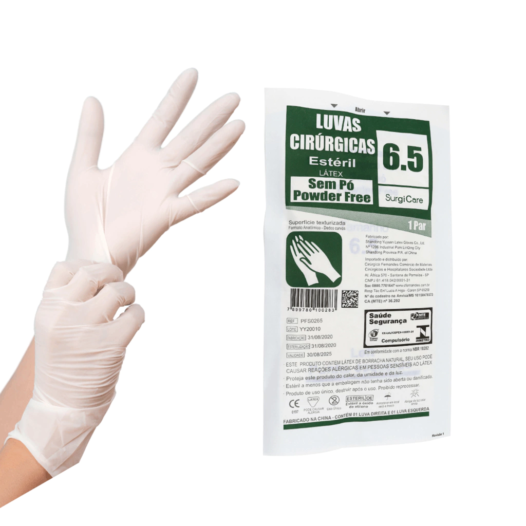 Luva Cirúrgica de Latéx Estéril Sem Pó