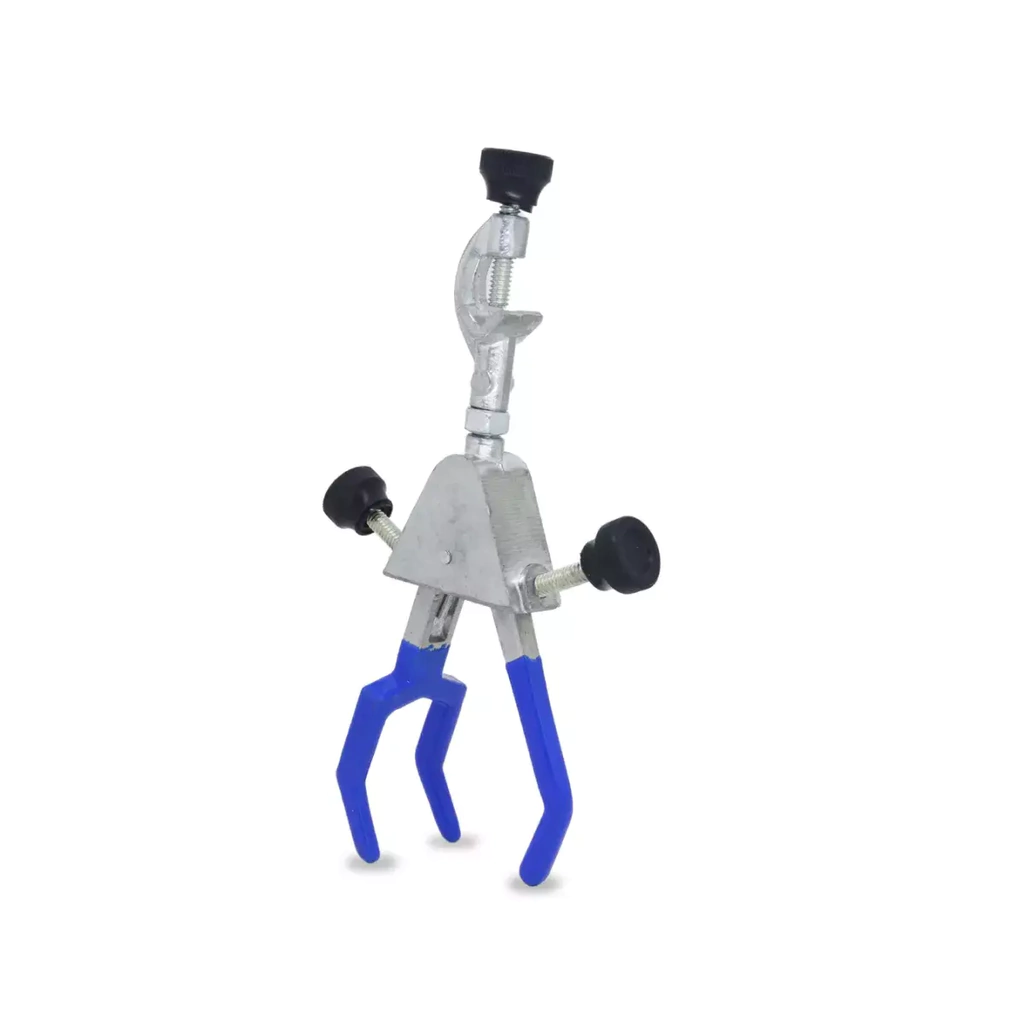 A Pinça para Condensador com Mufa é um acessório essencial em laboratórios de química e biologia para sustentar condensadores durante experimentos. Fabricada em alumínio fundido, é uma pinça resistente e durável. Seu design de três dedos (tridente) permite uma fixação segura e ajustável, enquanto sua abertura de até 90mm a torna compatível com uma variedade de tamanhos de condensadores. Além disso, sua capacidade giratória facilita o ajuste do ângulo do condensador durante o experimento.