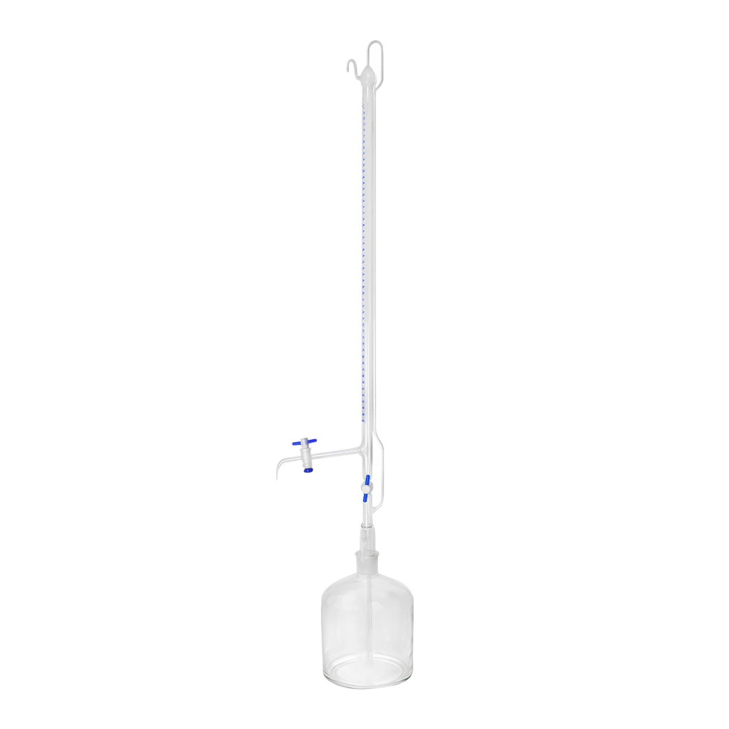 A Bureta Automática com Torneira de PTFE com Frasco 100mL é um instrumento vital para laboratórios que realizam titulações com precisão. A torneira de PTFE (Politetrafluoretileno) proporciona excelente resistência química e durabilidade, permitindo um controle preciso e seguro do fluxo de líquidos. O frasco acoplado com capacidade de 100mL facilita a manipulação e armazenamento de soluções durante os processos analíticos.
